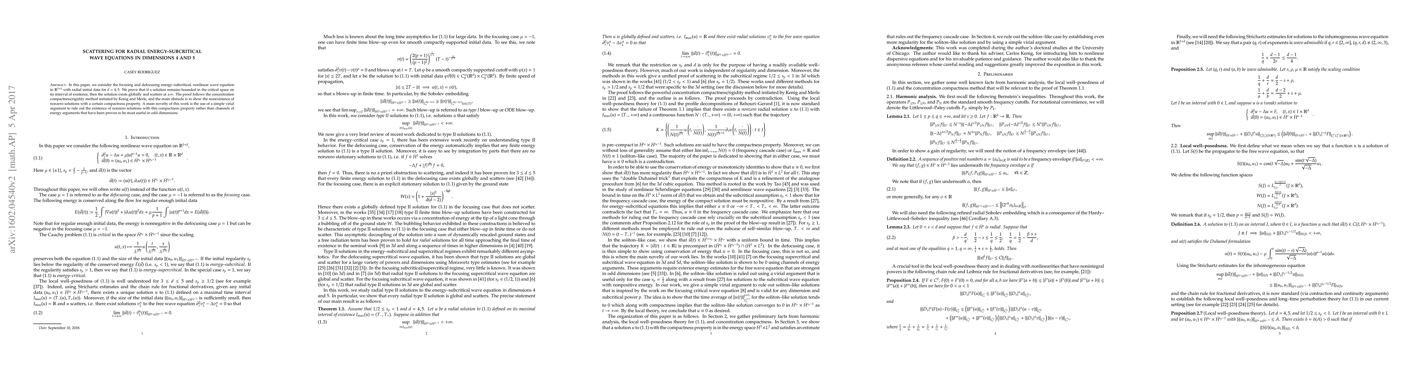 This paper investigates the global existence and scattering of solutions for radial energy-subcritical nonlinear wave equations in dimensions $d = 4,5$. It proves global existence and scattering if solutions remain bounded, using the concentration compactness method and a novel virial argument to rule out compact solutions.