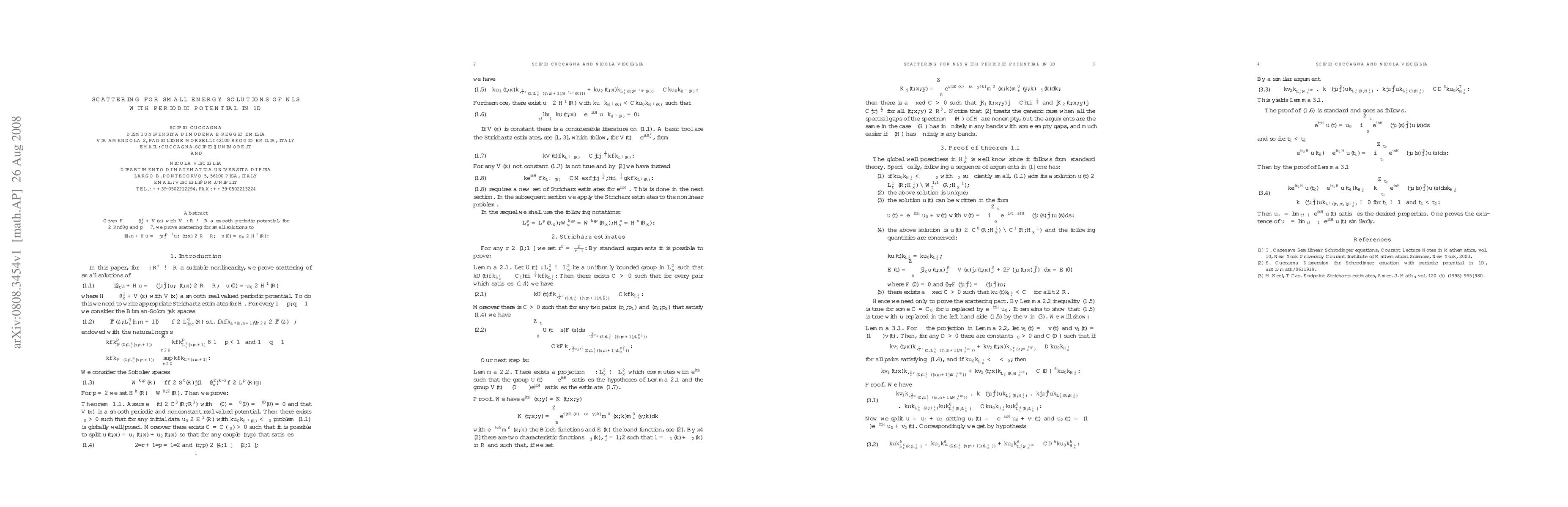 Researchers prove scattering for small solutions to nonlinear Schroedinger equations in 1D with periodic potential, showing that these solutions can behave like free particles.