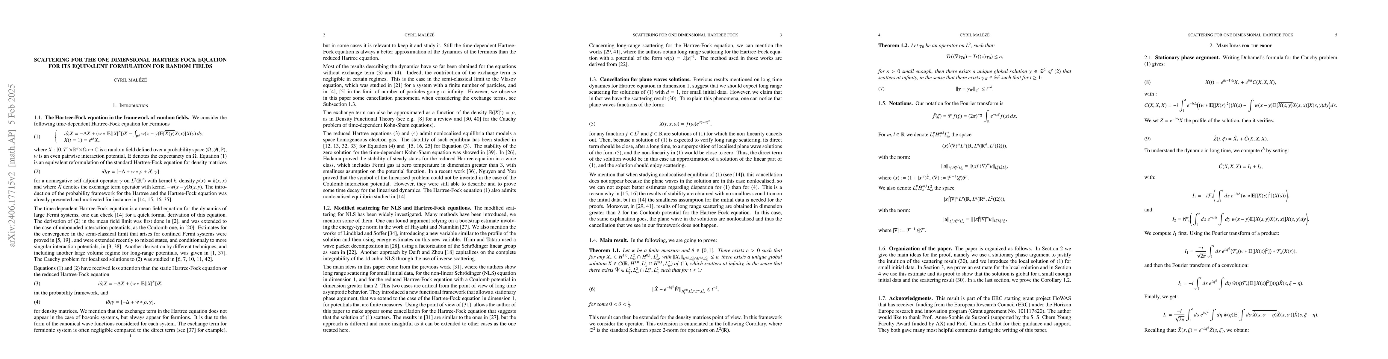 This paper demonstrates that the 1D Hartree-Fock equation for localized initial data exhibits no long-range scattering due to a nonlinear cancellation between direct and exchange terms, achieved through the use of space-time resonances, leading to scattering to linear waves.