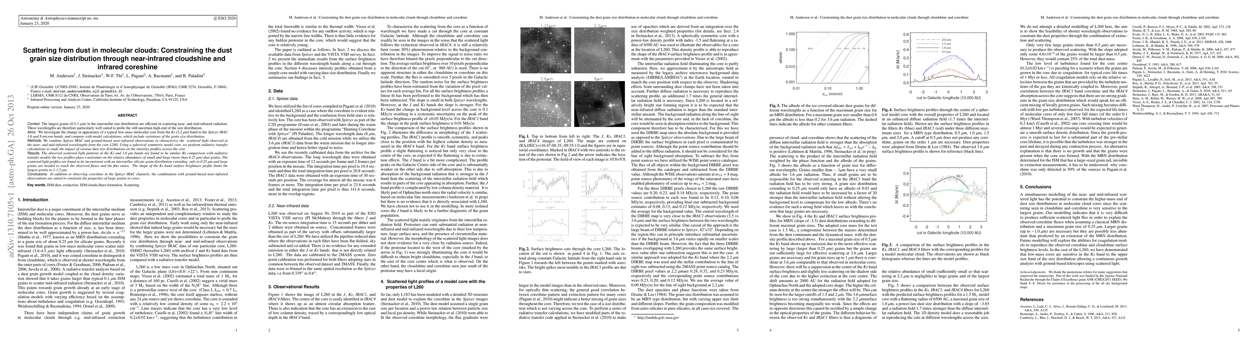 This study uses near-infrared and mid-infrared observations to probe the size distribution of interstellar dust grains in molecular clouds, finding that large grains (0.5-1 micron) are necessary to match observed scattered light patterns. The results indicate that grains larger than 0.25 micron are required to explain the observed flux ratios, with the largest grains constrained to be between 1-1.5 micron.