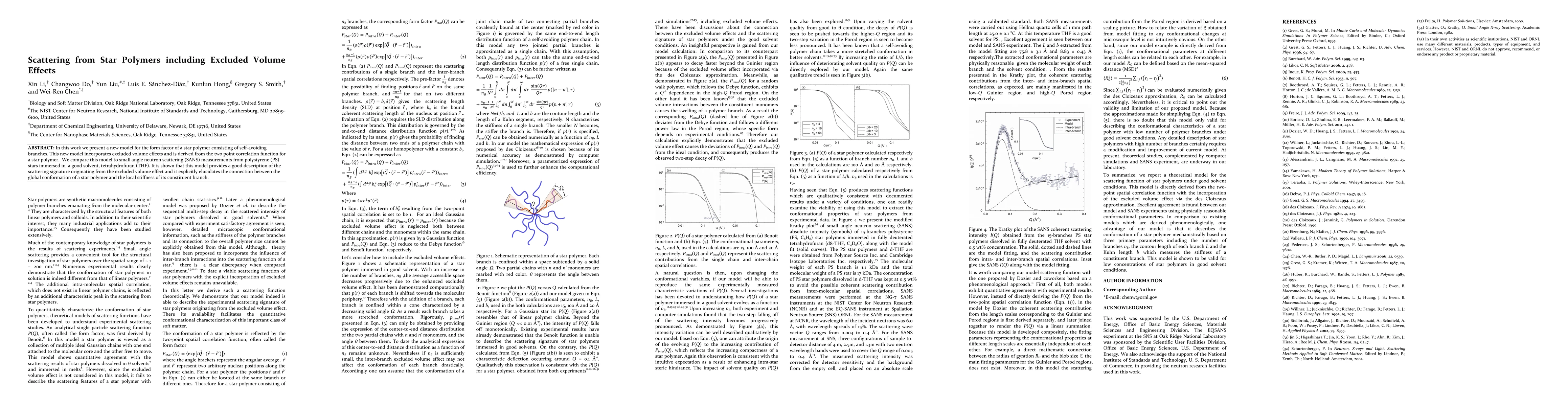 This paper introduces a new model for the scattering form factor of star polymers with self-avoiding branches, incorporating excluded volume effects derived from the two-point correlation function. It demonstrates the model's accuracy by comparing it to SANS measurements of polystyrene stars in tetrahydrofuran, showing it effectively describes the scattering signature due to excluded volume and links polymer conformation to branch stiffness.