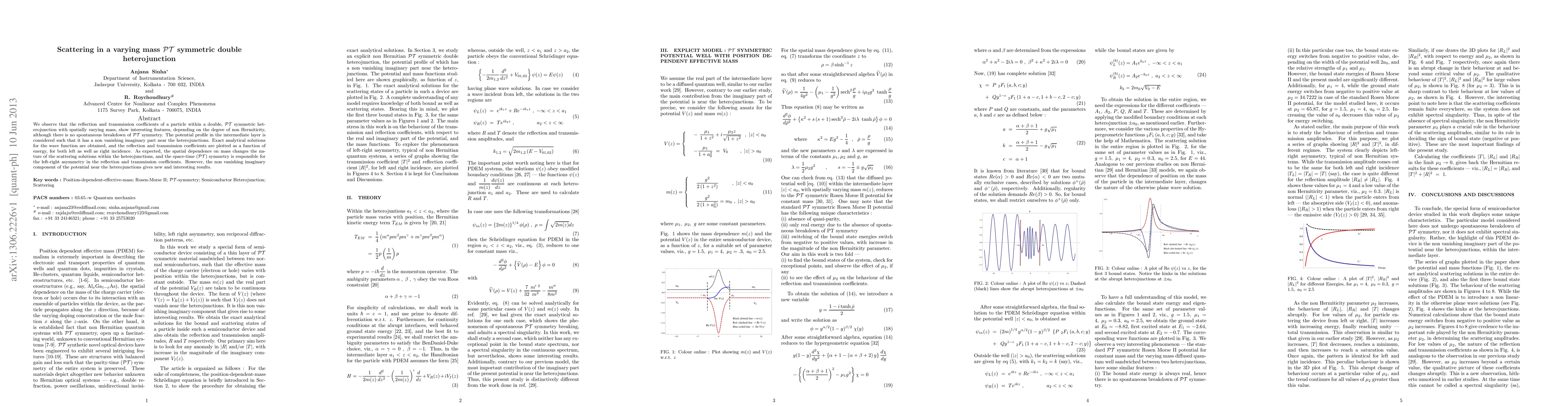 We observe that the reflection and transmission coefficients of a particle within a double, PT symmetric heterojunction with spatially varying mass, show interesting features, depending on the degree of non Hermiticity, although there is no spontaneous breakdown of PT symmetry. The potential profile in the intermediate layer is considered such that it has a non vanishing imaginary part near the heterojunctions. Exact analytical solutions for the wave function are obtained, and the reflection and transmission coefficients are plotted as a function of energy, for both left as well as right incidence. As expected, the spatial dependence on mass changes the nature of the scattering solutions within the heterojunctions, and the space-time (PT) symmetry is responsible for the left-right asymmetry in the reflection and transmission coefficients. However, the non vanishing imaginary component of the potential near the heterojunctions gives new and interesting results.