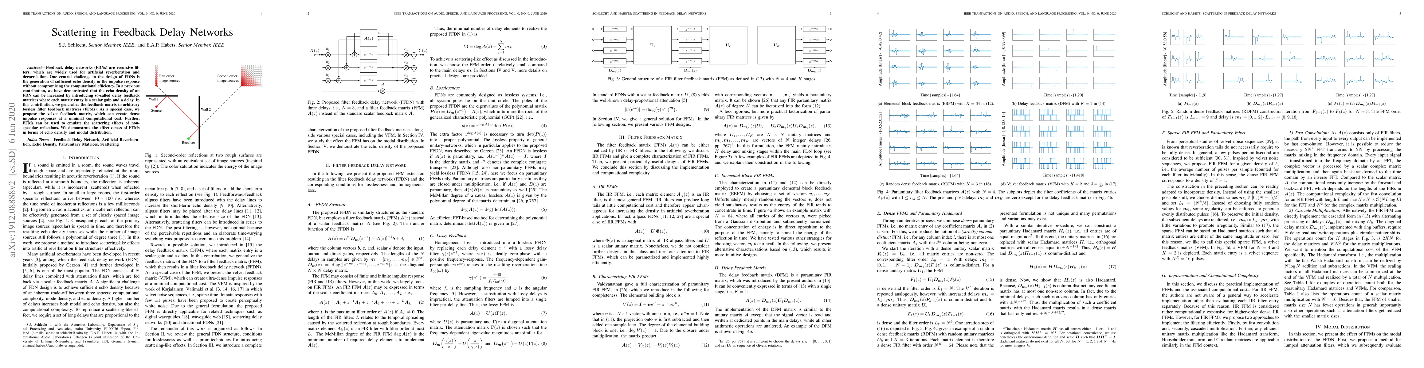 This paper generalizes feedback delay networks (FDNs) using lossless filter feedback matrices (FFMs) to enhance echo density without sacrificing computational efficiency. The proposed velvet feedback matrix exemplifies this approach, achieving dense impulse responses with minimal computational cost and emulating scattering effects.