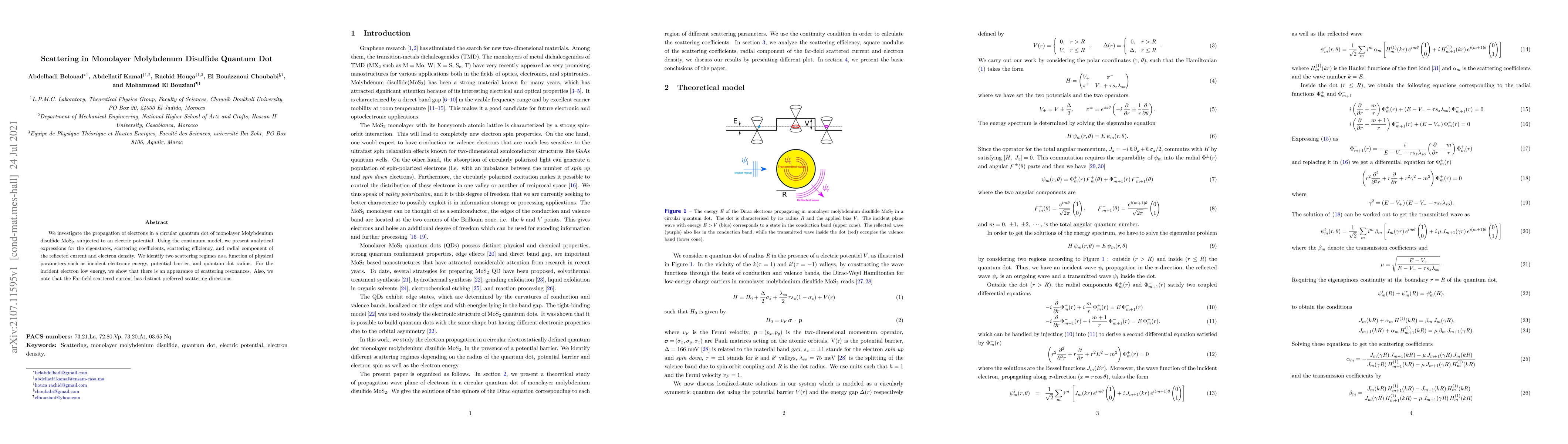This study analyzes electron propagation in a circular quantum dot of monolayer Molybdenum Disulfide (MoS₂) under an electric potential, revealing two scattering regimes based on incident energy and other parameters. It provides analytical expressions for eigenstates and scattering characteristics, highlighting scattering resonances at low energies and directional scattering of the far-field current.
