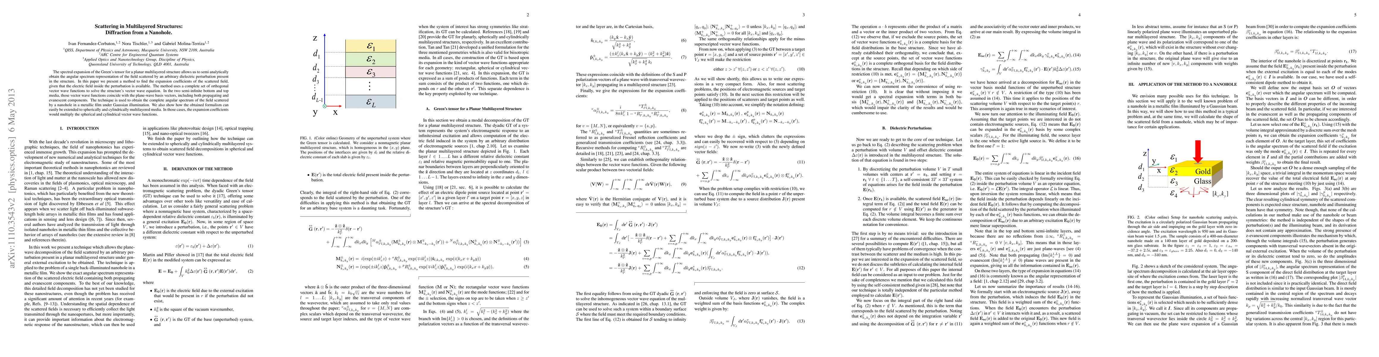The spectral expansion of the Green's tensor for a planar multilayered structure allows us to semi analytically obtain the angular spectrum representation of the field scattered by an arbitrary dielectric perturbation present in the structure. In this paper we present a method to find the expansion coefficients of the scattered field, given that the electric field inside the perturbation is available. The method uses a complete set of orthogonal vector wave functions to solve the structure's vector wave equation. In the two semi-infinite bottom and top media, those vector wave functions coincide with the plane-wave basis vectors, including both propagating and evanescent components. The technique is used to obtain the complete angular spectrum of the field scattered by a nanohole in a metallic film under Gaussian illumination. We also show how the obtained formalism can easily be extended to spherically and cylindrically multilayered media. In those cases, the expansion coefficients would multiply the spherical and cylindrical vector wave functions.
