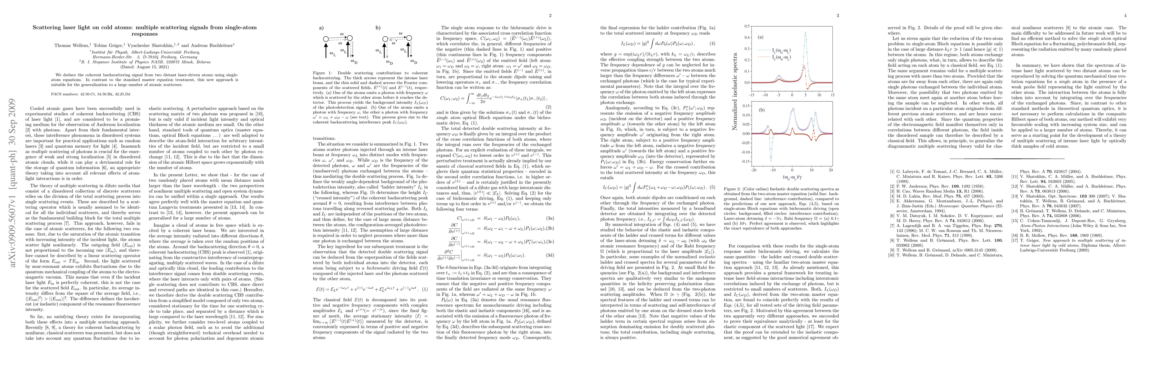 This research presents a novel method to analyze coherent backscattering signals from multiple cold atoms using single-atom responses, providing a more generalizable approach than traditional master equation treatments.