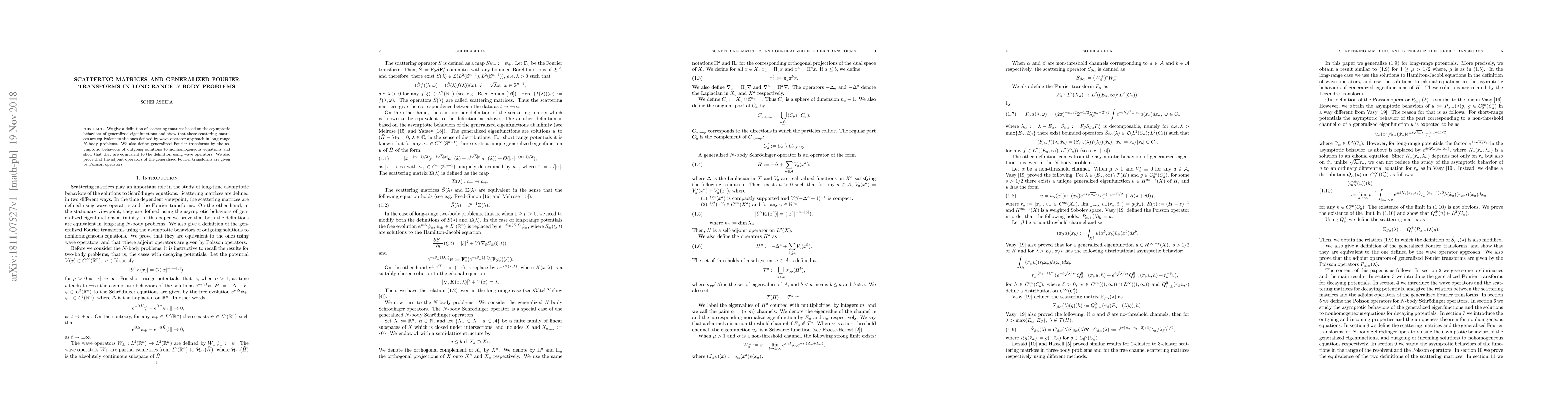 This paper defines scattering matrices based on the asymptotic behaviors of generalized eigenfunctions and shows their equivalence to the wave-operator approach in long-range $N$-body problems. It also introduces generalized Fourier transforms linked to the asymptotic behaviors of outgoing solutions, proving their equivalence to the wave-operator definition and establishing that their adjoints are Poisson operators.