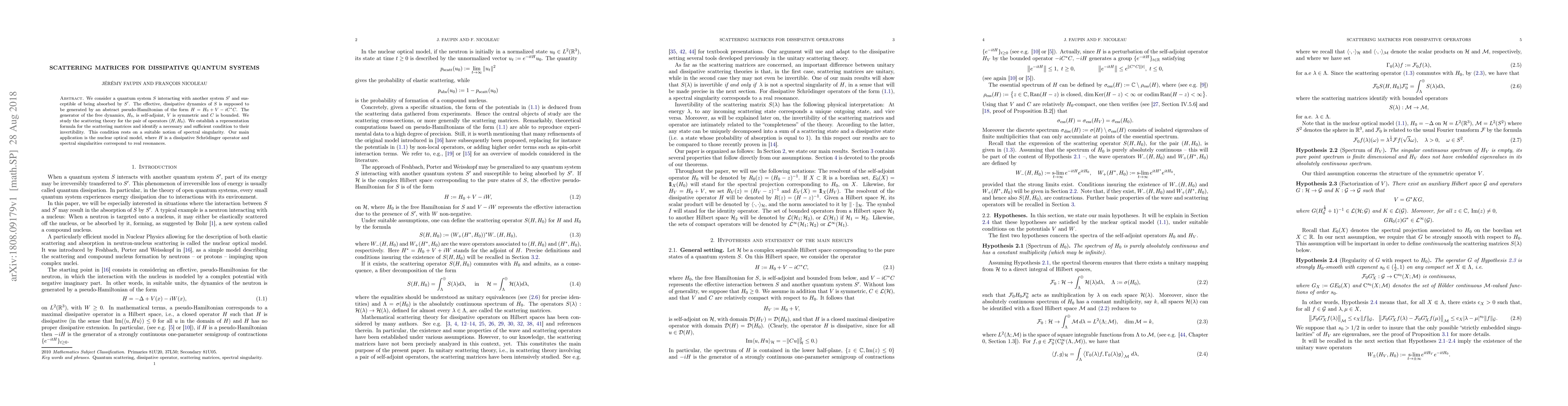 We consider a quantum system S interacting with another system S and susceptible of being absorbed by S. The effective, dissipative dynamics of S is supposed to be generated by an abstract pseudo-Hamiltonian of the form H = H0 + V -- iC * C. The generator of the free dynamics, H0, is self-adjoint, V is symmetric and C is bounded. We study the scattering theory for the pair of operators (H, H0). We establish a representation formula for the scattering matrices and identify a necessary and sufficient condition to their invertibility. This condition rests on a suitable notion of spectral singularity. Our main application is the nuclear optical model, where H is a dissipative Schr{\"o}dinger operator and spectral singularities correspond to real resonances.