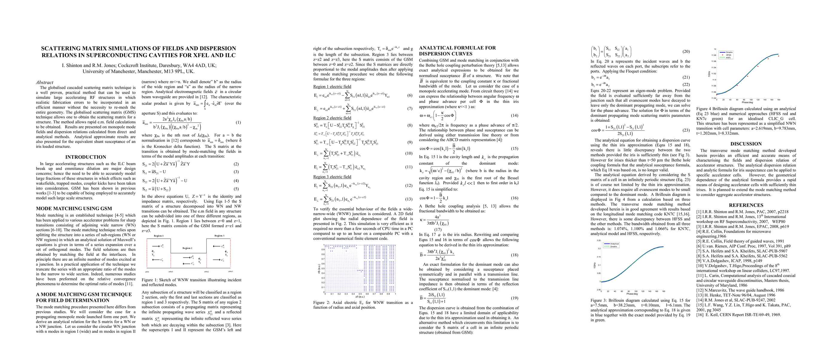 Researchers used a globalised cascaded scattering matrix technique to simulate fields and dispersion relations in superconducting cavities for XFEL and ILC, enabling efficient incorporation of fabrication errors without re-meshing the entire geometry.