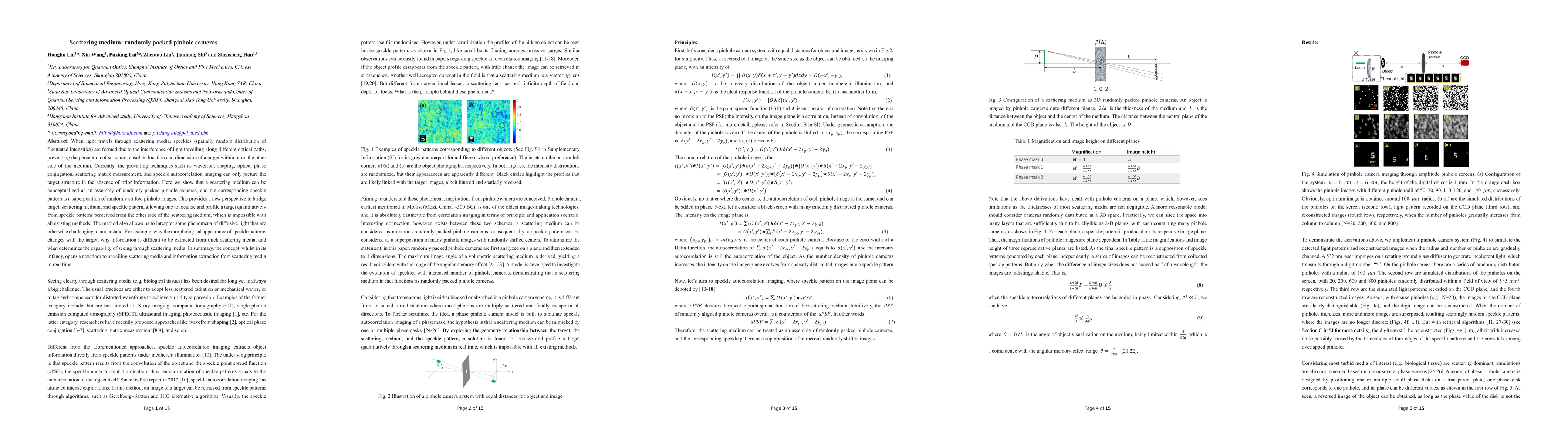 When light travels through scattering media, speckles (spatially random distribution of fluctuated intensities) are formed due to the interference of light travelling along different optical paths, preventing the perception of structure, absolute location and dimension of a target within or on the other side of the medium. Currently, the prevailing techniques such as wavefront shaping, optical phase conjugation, scattering matrix measurement, and speckle autocorrelation imaging can only picture the target structure in the absence of prior information. Here we show that a scattering medium can be conceptualized as an assembly of randomly packed pinhole cameras, and the corresponding speckle pattern is a superposition of randomly shifted pinhole images. This provides a new perspective to bridge target, scattering medium, and speckle pattern, allowing one to localize and profile a target quantitatively from speckle patterns perceived from the other side of the scattering medium, which is impossible with all existing methods. The method also allows us to interpret some phenomena of diffusive light that are otherwise challenging to understand. For example, why the morphological appearance of speckle patterns changes with the target, why information is difficult to be extracted from thick scattering media, and what determines the capability of seeing through scattering media. In summary, the concept, whilst in its infancy, opens a new door to unveiling scattering media and information extraction from scattering media in real time.