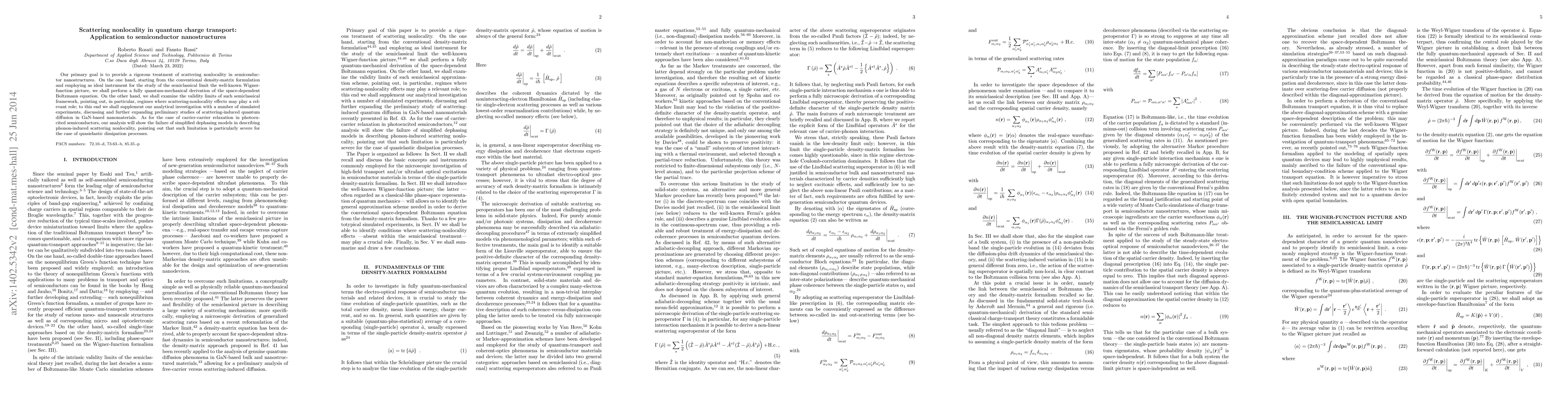 Our primary goal is to provide a rigorous treatment of scattering nonlocality in semiconductor nanostructures. On the one hand, starting from the conventional density-matrix formulation and employing as ideal instrument for the study of the semiclassical limit the well-known Wigner-function picture, we shall perform a fully quantum-mechanical derivation of the space-dependent Boltzmann equation. On the other hand, we shall examine the validity limits of such semiclassical framework, pointing out, in particular, regimes where scattering-nonlocality effects may play a relevant role; to this end we shall supplement our analytical investigation with a number of simulated experiments, discussing and further expanding preliminary studies of scattering-induced quantum diffusion in GaN-based nanomaterials. As for the case of carrier-carrier relaxation in photoexcited semiconductors, our analysis will show the failure of simplified dephasing models in describing phonon-induced scattering nonlocality, pointing out that such limitation is particularly severe for the case of quasielastic dissipation processes.