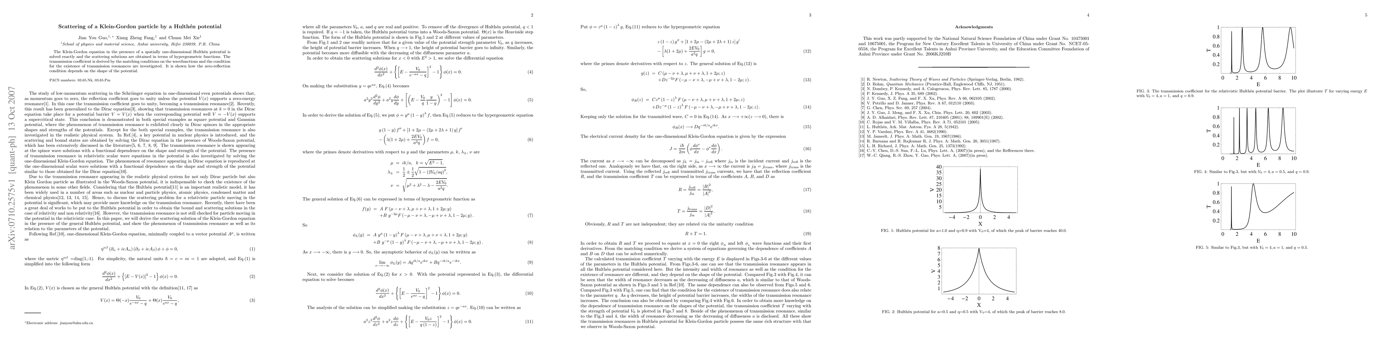 The research paper solves the Klein-Gordon equation with a Hulthén potential, deriving exact scattering solutions using hypergeometric functions and exploring transmission resonances and conditions for zero reflection, which depend on the potential's shape.