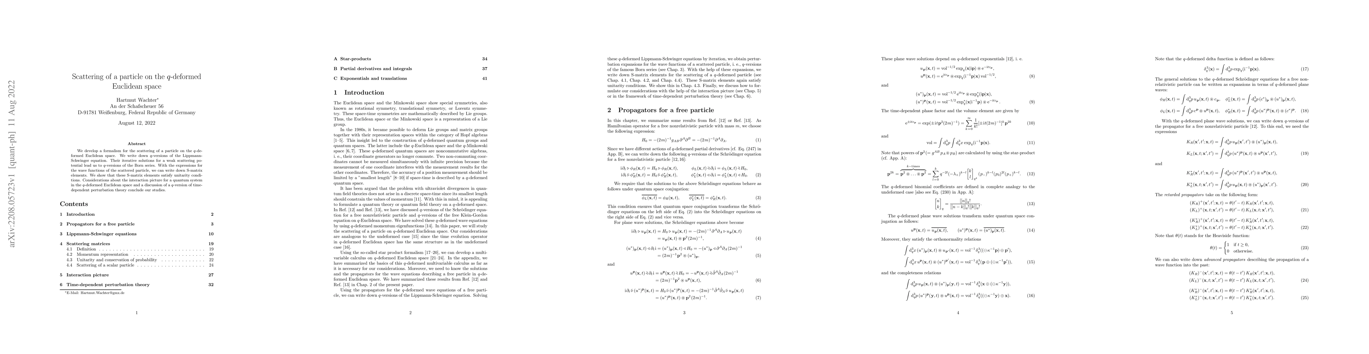 This paper develops a formalism for scattering on $q$-deformed Euclidean space, deriving $q$-versions of the Lippmann-Schwinger equation and Born series, and constructs S-matrix elements that satisfy unitarity conditions. It also discusses the interaction picture and a $q$-version of time-dependent perturbation theory.