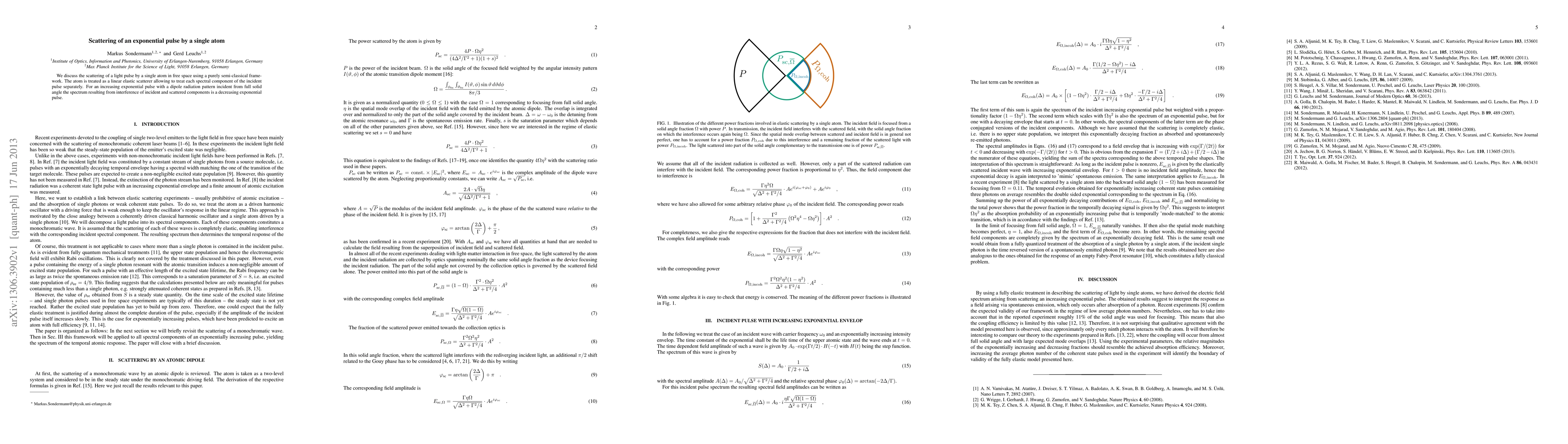 We discuss the scattering of a light pulse by a single atom in free space using a purely semi-classical framework. The atom is treated as a linear elastic scatterer allowing to treat each spectral component of the incident pulse separately. For an increasing exponential pulse with a dipole radiation pattern incident from full solid angle the spectrum resulting from interference of incident and scattered components is a decreasing exponential pulse.