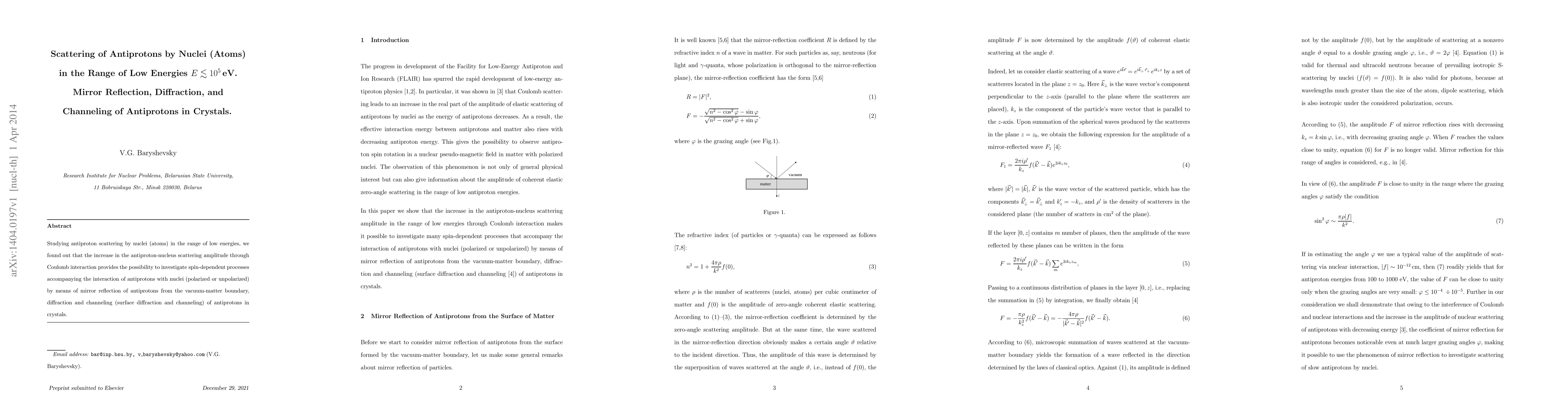 Summary: This study investigates antiproton scattering at low energies, revealing that Coulomb interaction enhances the scattering amplitude, enabling the exploration of spin-dependent processes via mirror reflection, diffraction, and channeling of antiprotons in crystals.