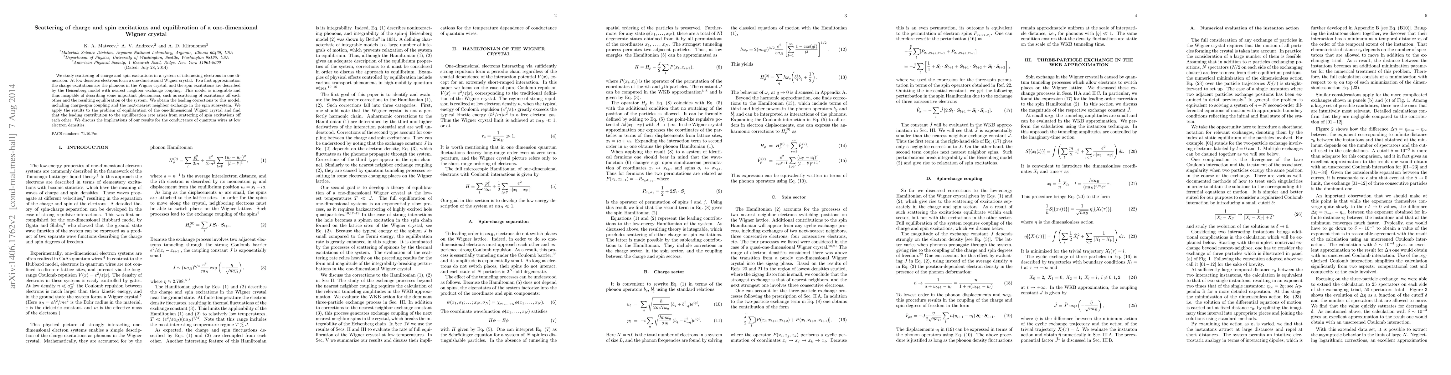 This paper investigates the scattering of charge and spin excitations in one-dimensional interacting electron systems forming a Wigner crystal. It finds that spin excitation scattering predominantly drives equilibration, with implications for the conductance of quantum wires at low densities.