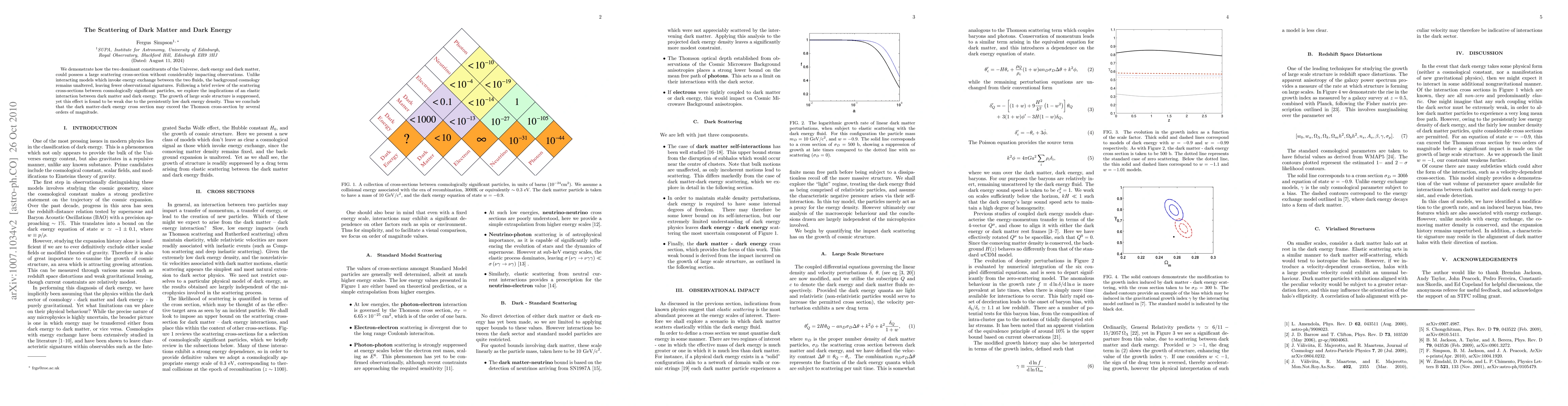 We demonstrate how the two dominant constituents of the Universe, dark energy and dark matter, could possess a large scattering cross-section without considerably impacting observations. Unlike models involving energy exchange between the two fluids, the background cosmology remains unaltered, leaving fewer observational signatures. Following a brief review of the scattering cross-sections between cosmologically significant particles, we explore the implications of an elastic interaction between dark matter and dark energy. The growth of large scale structure is suppressed, yet this effect is found to be weak due to the persistently low dark energy density. Thus we conclude that the dark matter-dark energy cross section may exceed the Thomson cross-section by several orders of magnitude.