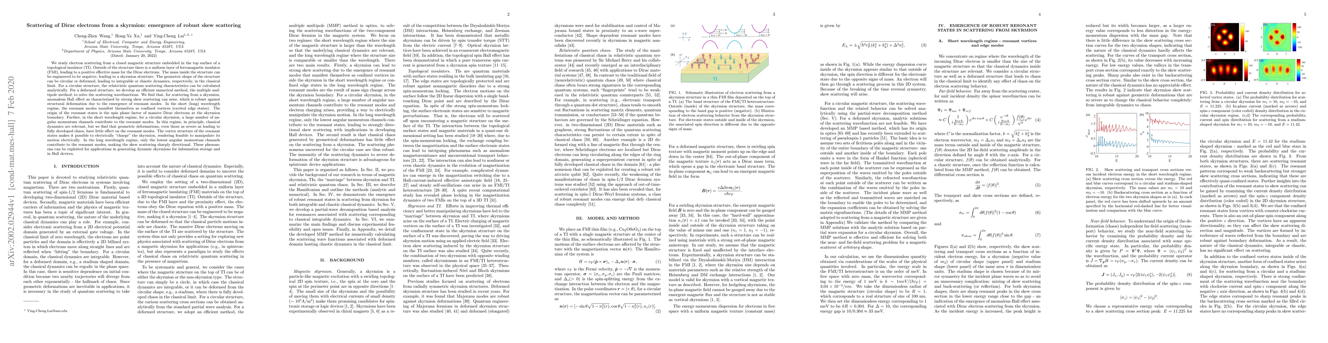 Researchers studied how electrons scatter off a magnetic structure in a topological insulator, finding that this scattering can lead to a robust 'skew' effect that enables manipulation of the skyrmion's motion via electrical means.
