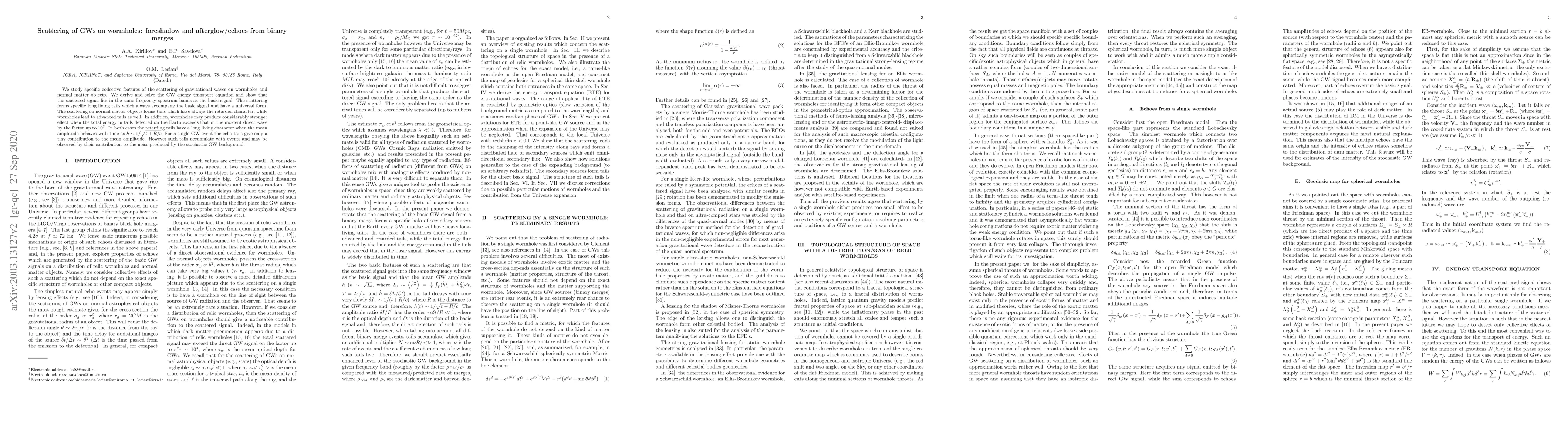 We study specific features of the scattering of gravitational waves on wormholes and normal matter objects. We derive and solve the GW energy transport equation and show that the scattered signal lies in the same frequency spectrum bands as the basic signal. The scattering forms specific long living tails which always accompany the basic signal and have a universal form. The scattering on normal matter objects forms tails which have always the retarding character, while wormholes lead to advanced tails as well. In addition, wormholes may produce considerably stronger effect, when the total energy in tails exceeds the energy of the incident wave by the factor up to $10^{3}$ . In both cases the retarding tails have a long living character when the mean amplitude behaves with time as $h\sim 1/\sqrt{t+R/c}$. For a single GW event the echo tails give only a tiny contribution to the mean amplitude. However such tails accumulate with events and may be observed by their contribution to the noise produced by the stochastic GW background.