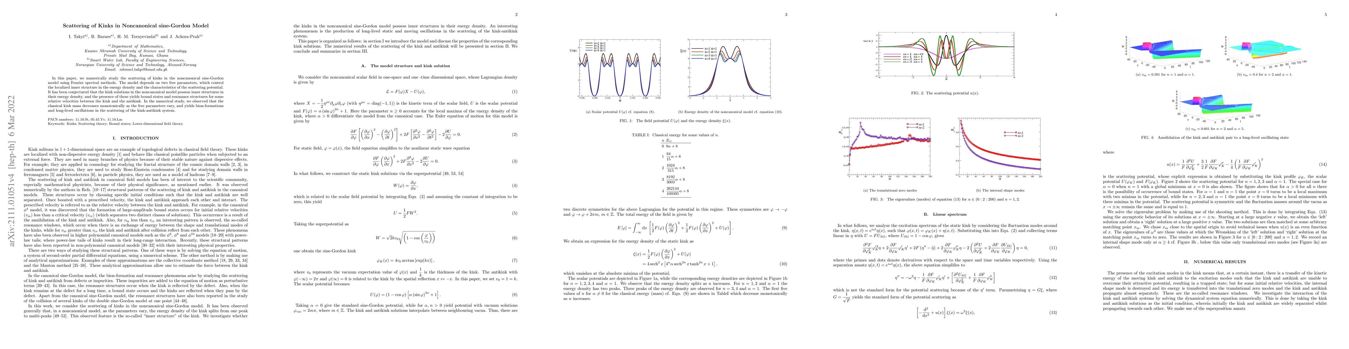 This paper numerically investigates the scattering behavior of kinks in a noncanonical sine-Gordon model using Fourier spectral methods. The study reveals that varying model parameters leads to monotonic decreases in classical kink mass, resulting in bion formations and long-lived oscillations during the scattering of kink-antikink pairs.