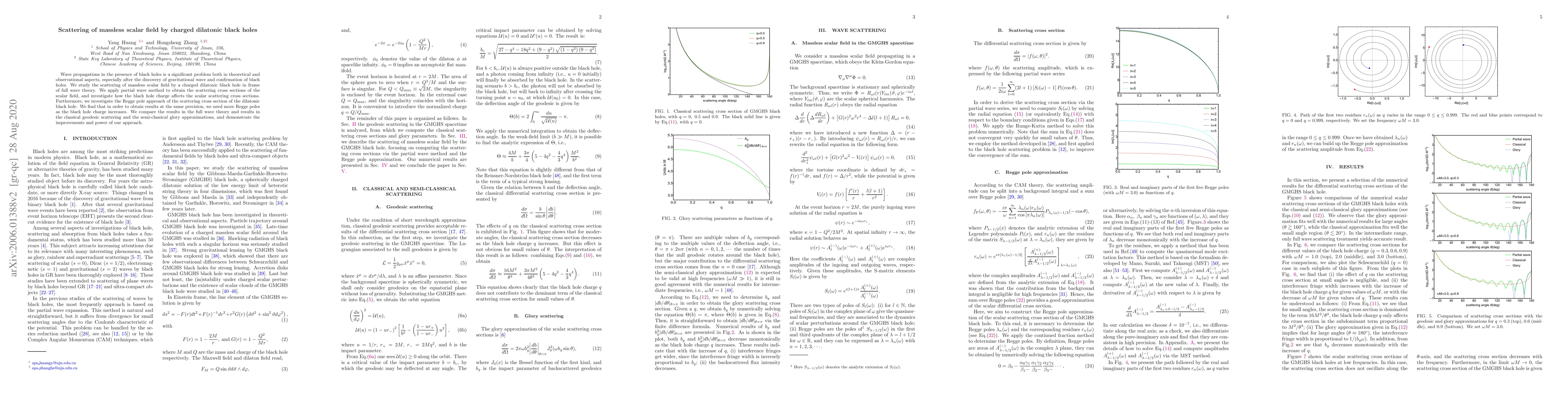 This study investigates how charged dilatonic black holes scatter massless scalar fields using full wave theory and Regge pole approach, revealing the impact of black hole charge on scattering cross sections and demonstrating improvements over classical approximations.
