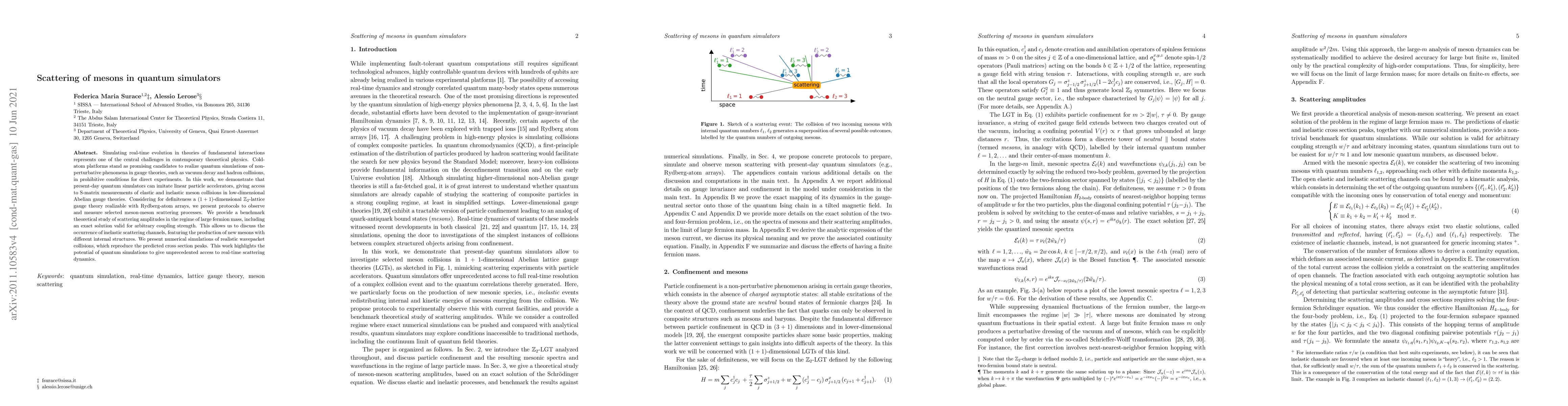This paper explores the use of quantum simulators, particularly cold-atom platforms, to simulate meson scattering in low-dimensional gauge theories. It demonstrates protocols for observing meson-meson scattering processes and provides a theoretical study of scattering amplitudes, highlighting the potential for quantum simulations to reveal real-time scattering dynamics.