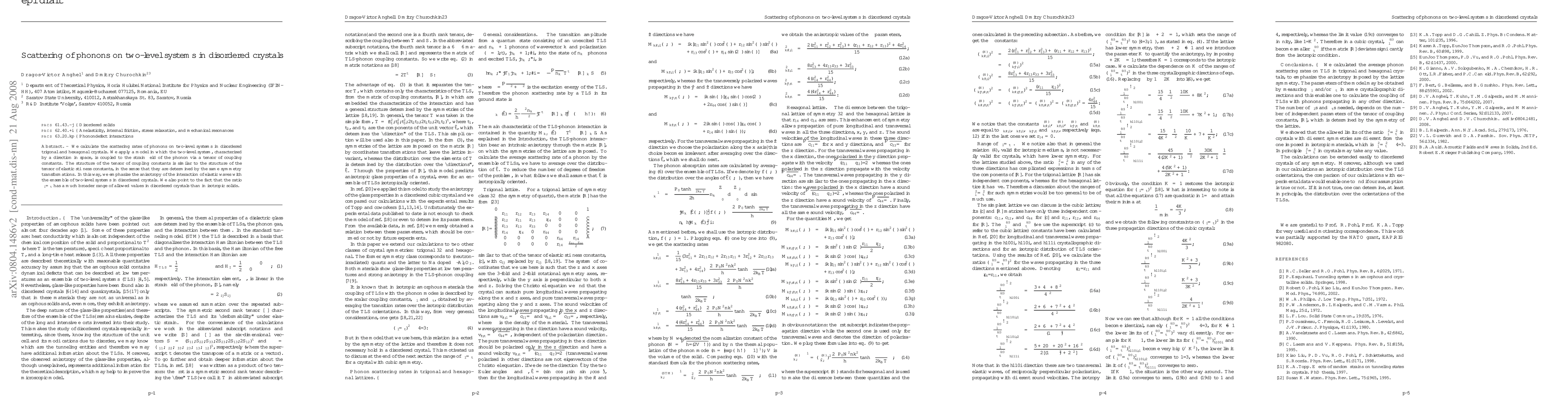 Researchers calculated phonon scattering rates in disordered crystals with two-level systems, highlighting anisotropy in the interaction between elastic waves and these systems.