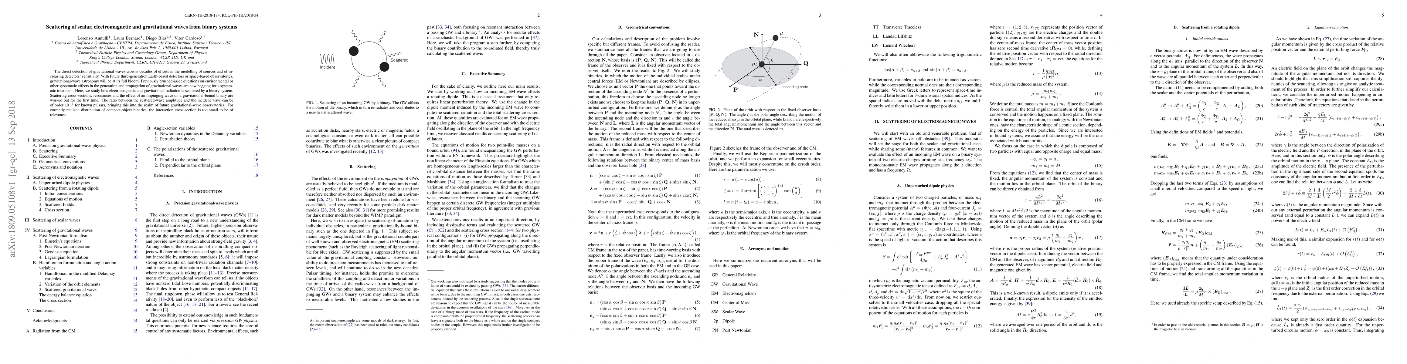Researchers studied how electromagnetic and gravitational waves interact with binary systems, finding that scattering effects can affect wave amplitudes in some cases, potentially detectable by future observatories.