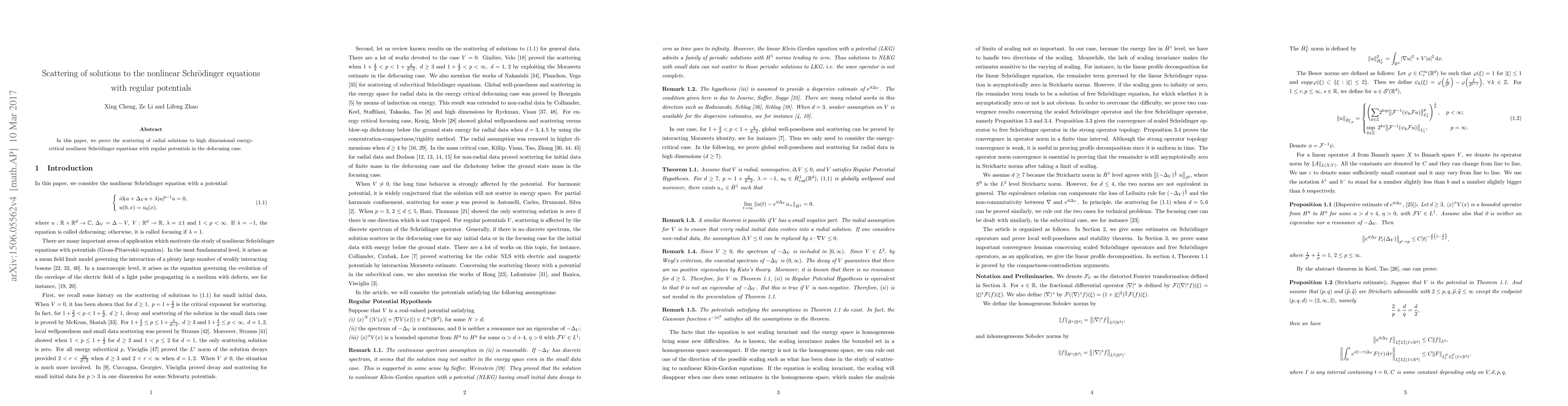 Summary: This paper proves the scattering of radial solutions to energy-critical nonlinear Schrödinger equations with regular potentials in the defocusing case, establishing the long-term behavior of these solutions.