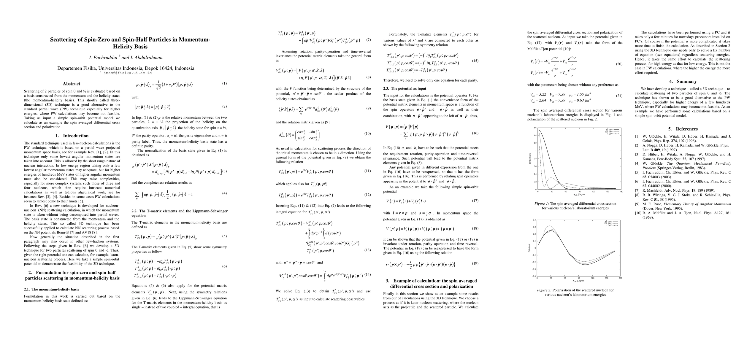 Researchers evaluate the scattering of spin-zero and spin-half particles using a new three-dimensional technique that's more suitable for high-energy collisions, providing insights into differential cross sections and polarization.