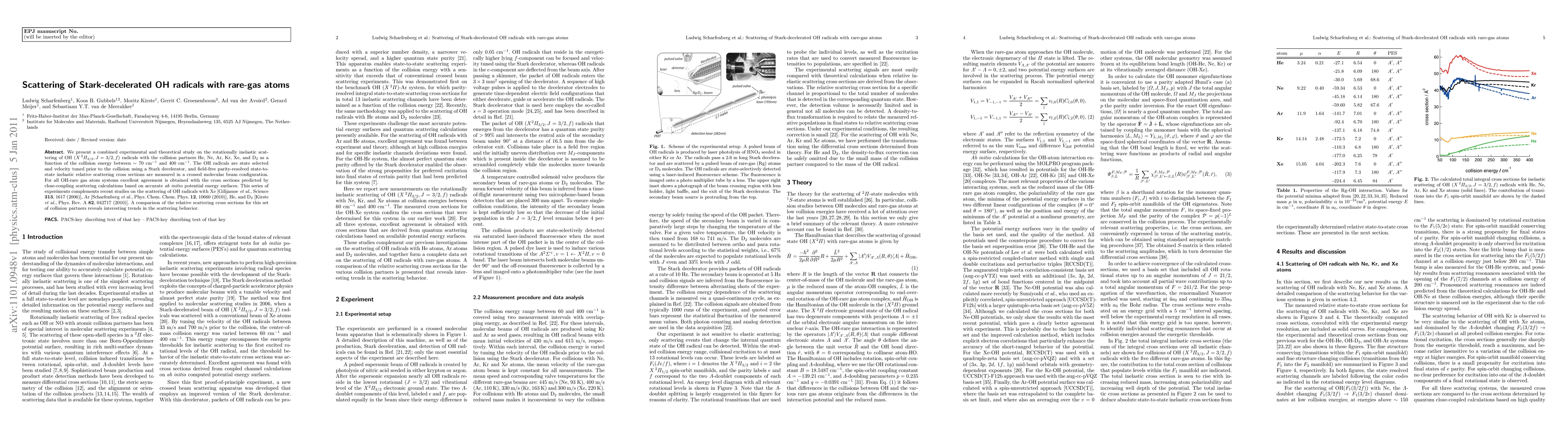 This study investigates the rotationally inelastic scattering of Stark-decelerated OH radicals with rare-gas atoms and D$_2$, using experimental and theoretical approaches. The findings show excellent agreement between measured state-to-state cross sections and close-coupling calculations, revealing significant trends in scattering behavior.