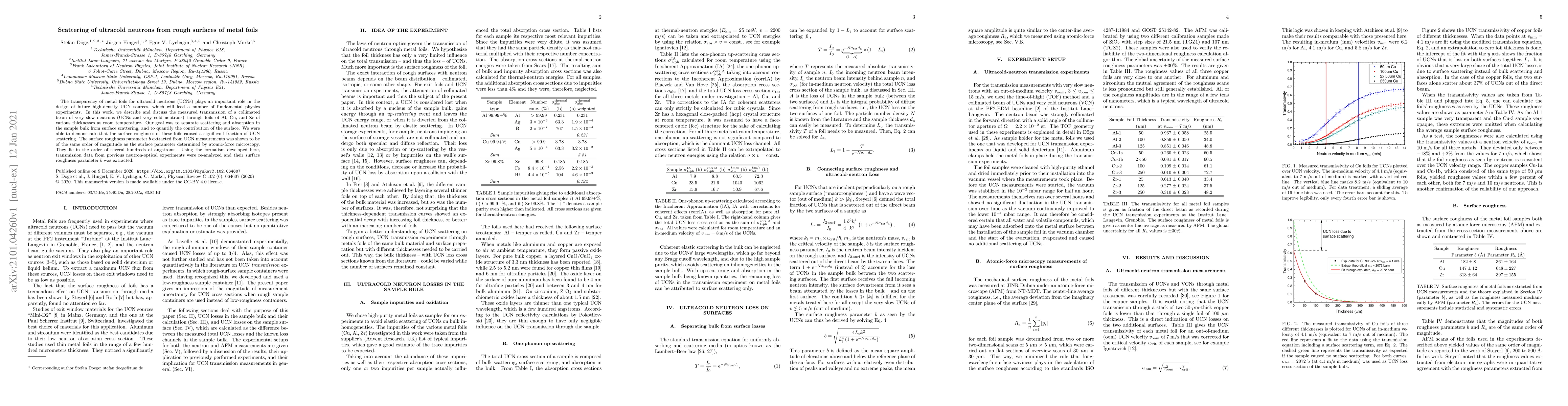 This paper investigates the scattering of ultracold neutrons from the rough surfaces of metal foils, demonstrating that surface roughness significantly contributes to neutron scattering. The study quantifies this effect using transmission data from Al, Cu, and Zr foils, showing that the surface roughness parameter aligns with measurements from atomic-force microscopy.