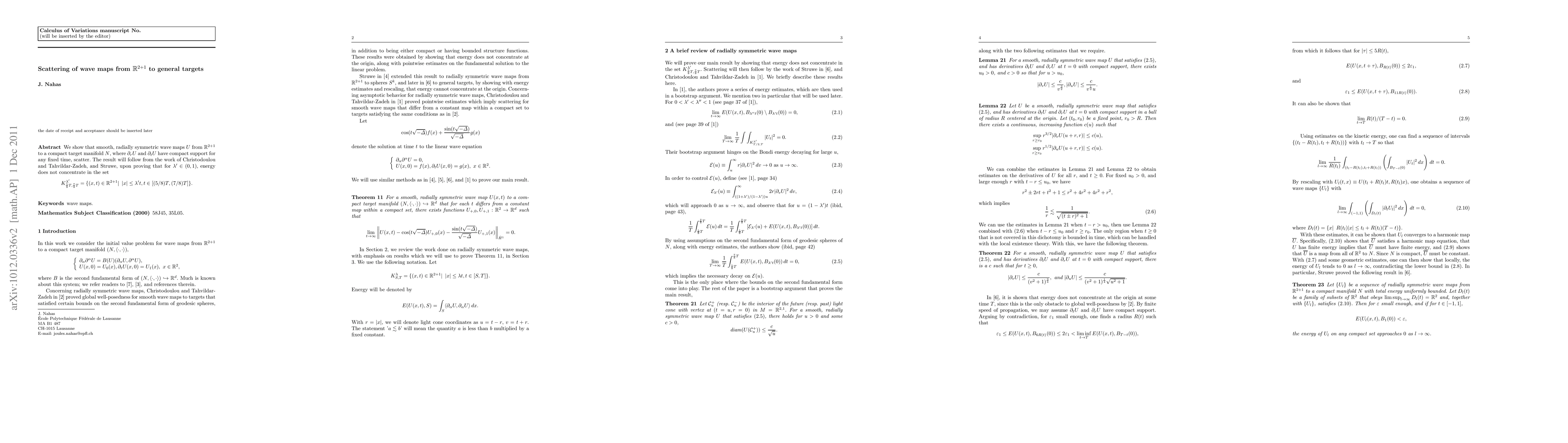 This paper proves that smooth, radially symmetric wave maps from a 2+1 dimensional space to compact targets scatter, leveraging previous works by Christodoulou & Tahvildar-Zadeh, and Struwe. The proof ensures no energy concentration in a specific temporal-spatial region, crucial for scattering.
