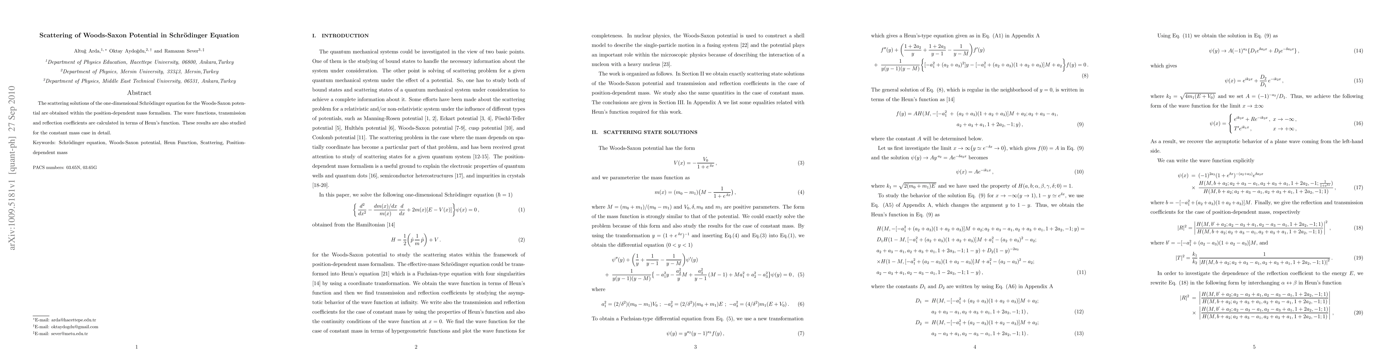 This paper investigates scattering solutions of the one-dimensional Schrödinger equation for the Woods-Saxon potential using the position-dependent mass formalism, calculating wave functions and transmission/reflection coefficients via Heun's function, and also examines the constant mass case in detail.