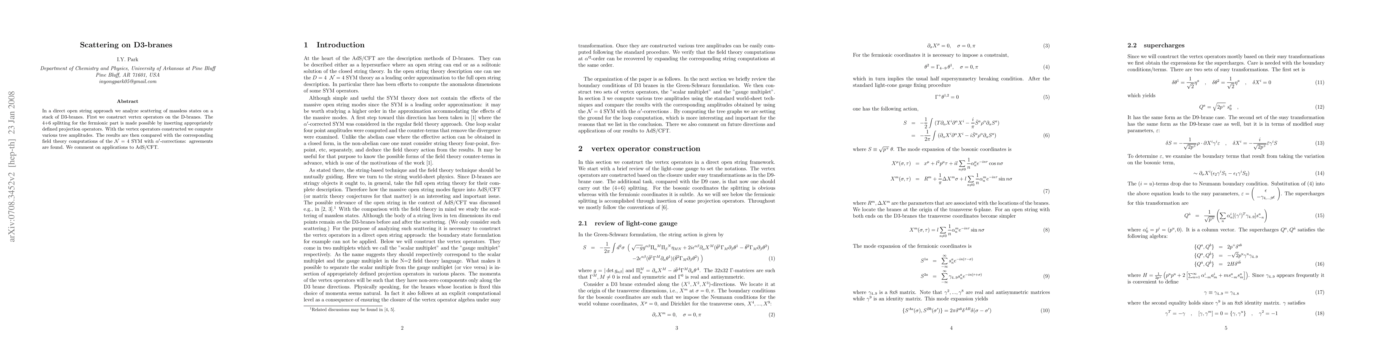 In a direct open string approach we analyze scattering of massless states on a stack of D3-branes. First we construct vertex operators on the D-branes. The 4+6 splitting for the fermionic part is made possible by inserting appropriately defined projection operators. With the vertex operators constructed we compute various tree amplitudes. The results are then compared with the corresponding field theory computations of the $\N=4$ SYM with $\a'$-corrections: agreements are found. We comment on applications to AdS/CFT.