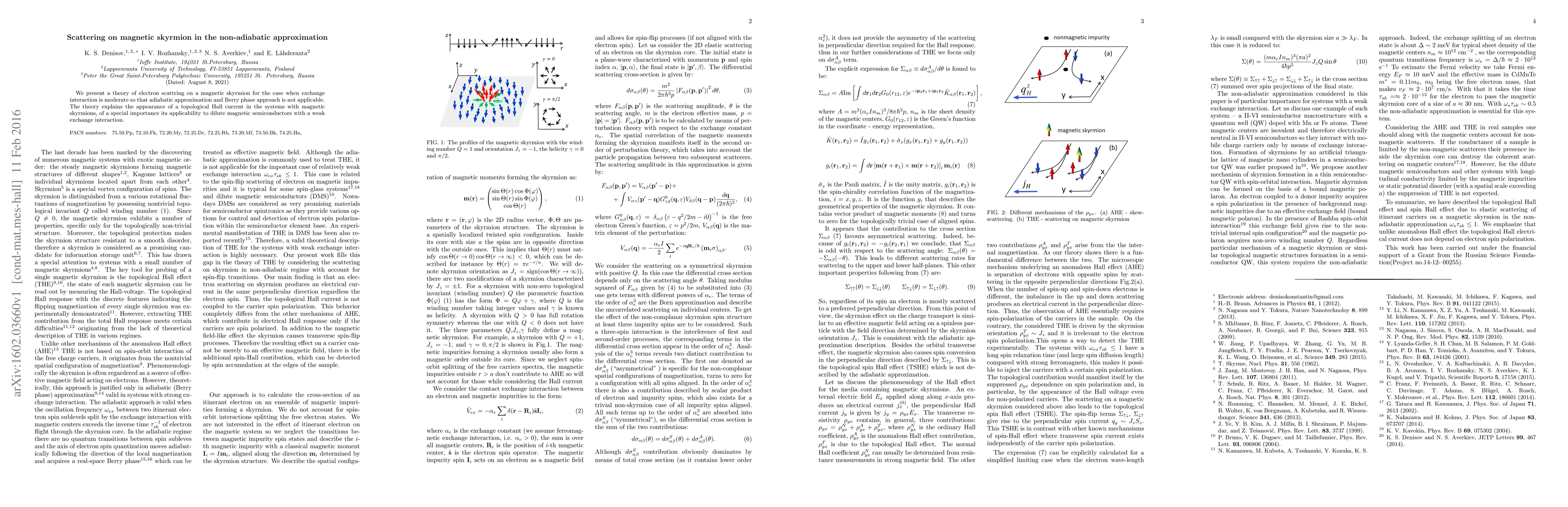 We present a theory of electron scattring on a magnetic skyrmion for the case when exchange interaction is moderate so that adiabatic approximation and Berry phase approach is not applicable. The theory explains the appearance of a topological Hall current in the systems with magnetic skyrmions, of a special importance its applicability to dilute magnetic semiconductors with a weak exchange interaction.