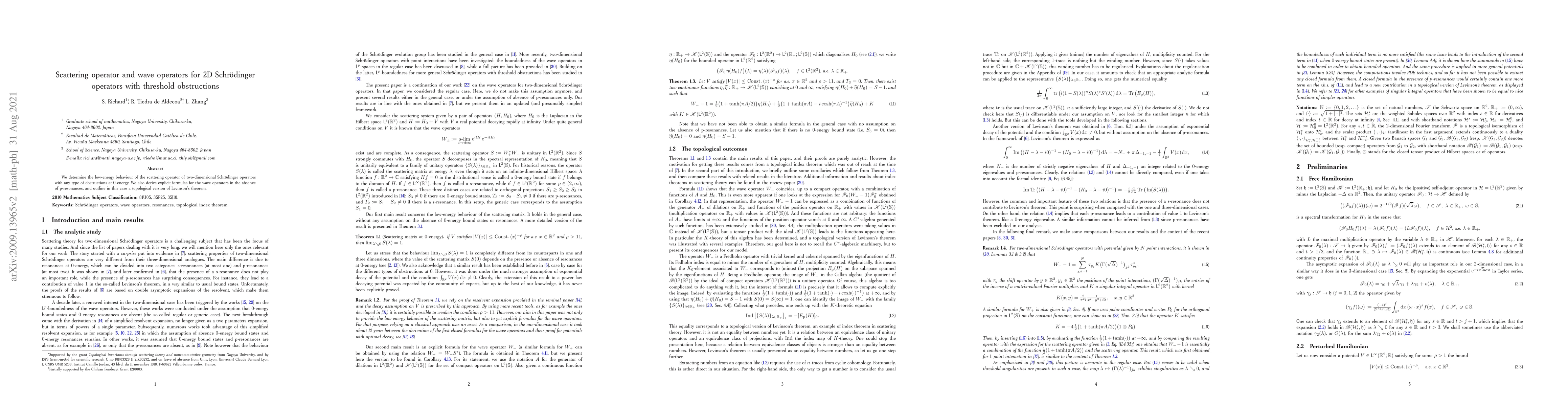 This paper investigates the low-energy scattering behavior of 2D Schrödinger operators with threshold obstructions at 0-energy, providing explicit formulas for wave operators in the absence of p-resonances and presenting a topological Levinson's theorem.