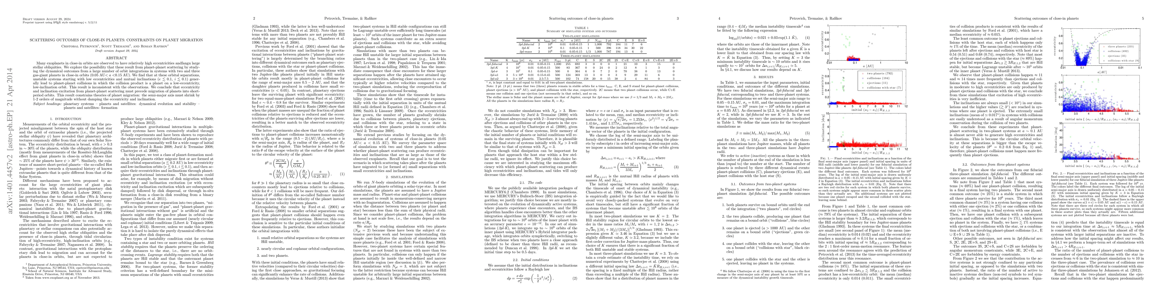 This paper investigates the scattering outcomes of close-in gas-giant planets, finding that planet-planet collisions typically result in low-eccentricity, low-inclination orbits, inconsistent with observed high eccentricities and obliquities. It concludes that eccentricity and inclination excitation must occur before planet migration, constraining migration theories to involve significant semi-major axis shrinkage without damping these properties.