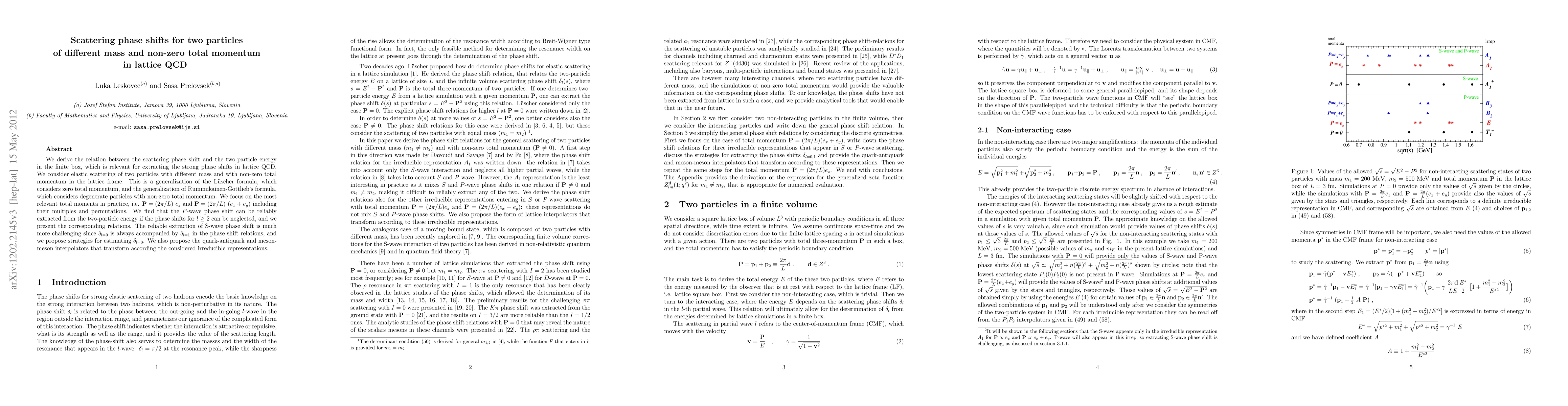 This paper generalizes Luscher's formula to derive relations between scattering phase shifts and two-particle energies in lattice QCD for non-zero total momentum and different masses. It presents methods for extracting P-wave phase shifts and discusses challenges in obtaining S-wave phase shifts, proposing strategies for estimating them.