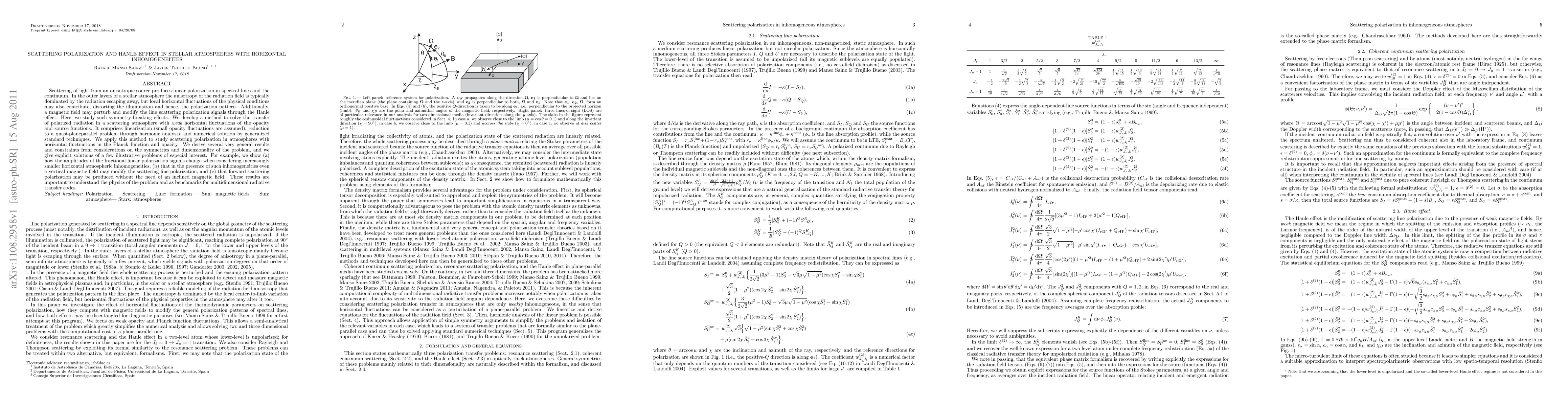 This paper develops a method to analyze the scattering polarization and Hanle effect in stellar atmospheres with horizontal inhomogeneities, showing how small fluctuations affect polarization signals and how magnetic fields can modify these effects. The study provides general results and constraints, highlighting the importance of these findings for understanding stellar atmosphere physics and benchmarking multidimensional radiative transfer codes.