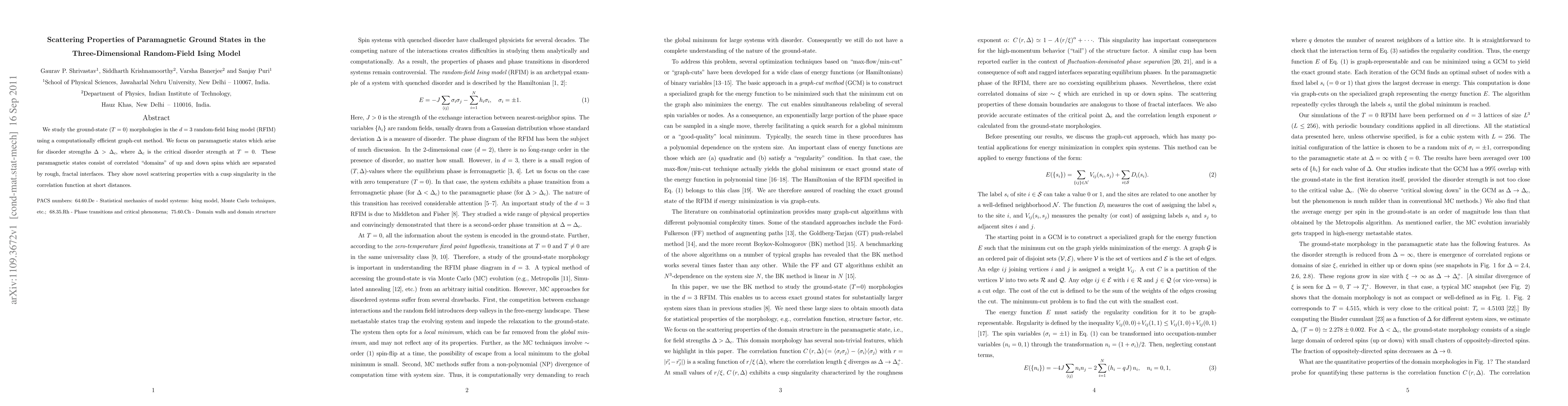 This paper investigates the ground-state morphologies in the three-dimensional random-field Ising model using a graph-cut method, focusing on paramagnetic states above a critical disorder strength. These states exhibit unique scattering properties, including a cusp singularity in the correlation function at short distances.