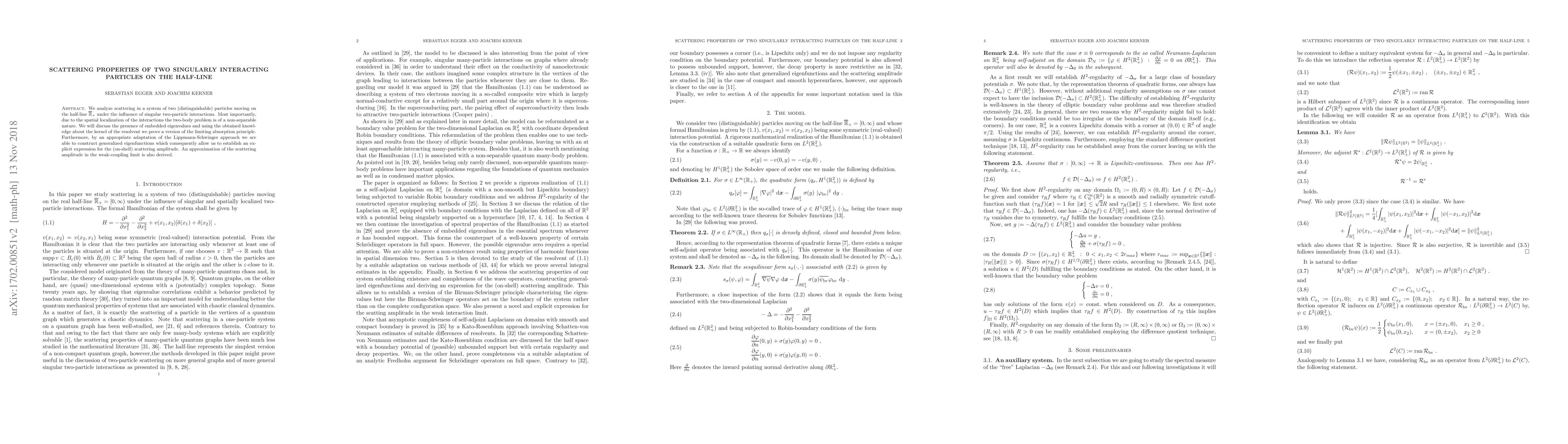 Researchers studied scattering in a system of two particles on a half-line with singular interactions, discovering embedded eigenvalues and a limiting absorption principle, which led to an explicit expression for the scattering amplitude.