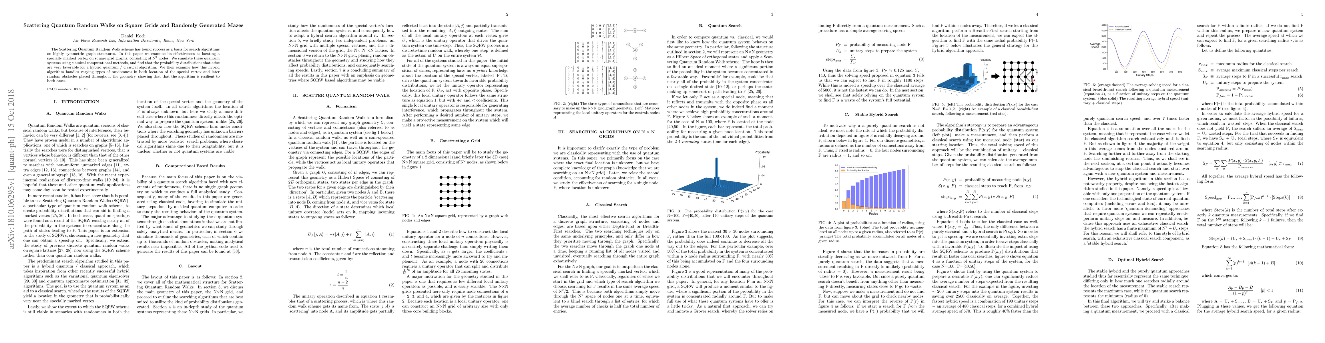 A quantum algorithm called Scattering Quantum Random Walk successfully locates a marked vertex on square grid graphs with favorable probability distributions for hybrid algorithms. It also handles varying randomness and obstacles effectively.