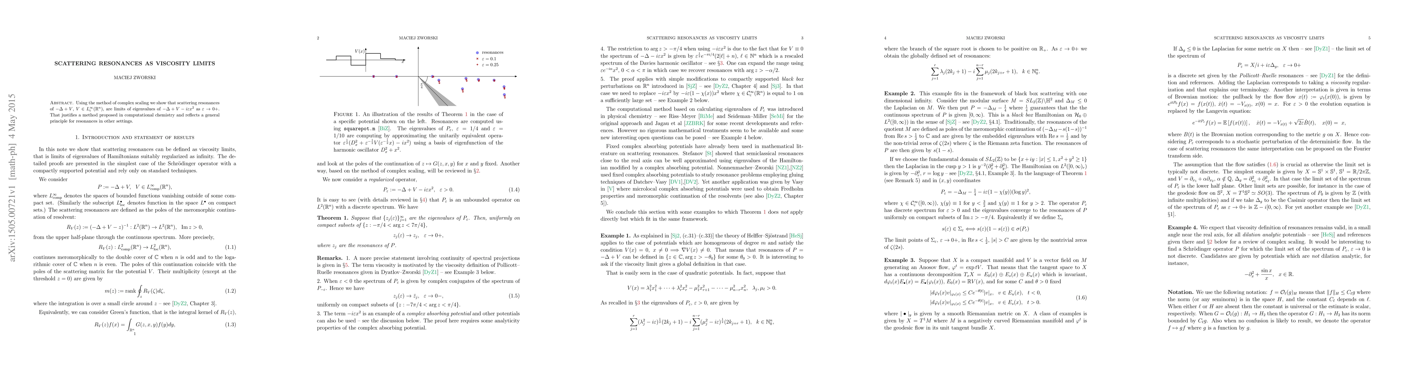 Researchers show that scattering resonances in quantum systems can be understood as limits of eigenvalues of a related equation as viscosity approaches zero, providing new insights into resonance behavior.