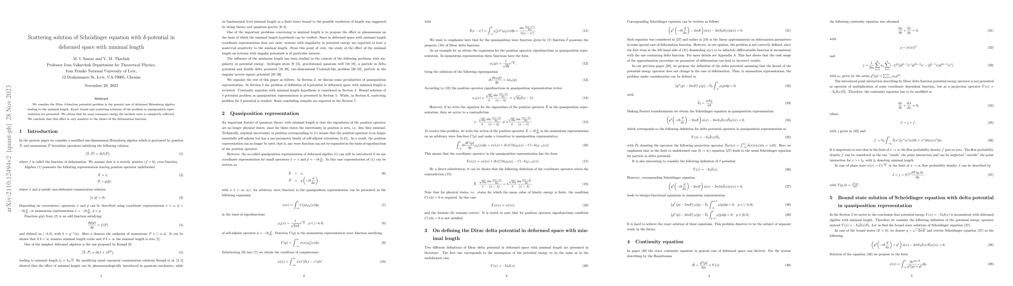This paper investigates the scattering solutions of the Schrödinger equation with a $\delta$-potential in a space with a deformed Heisenberg algebra, leading to minimal length. It presents exact bound and scattering solutions, revealing complete wave reflection at certain resonance energies, and highlights the sensitivity of this effect to the deformation function.