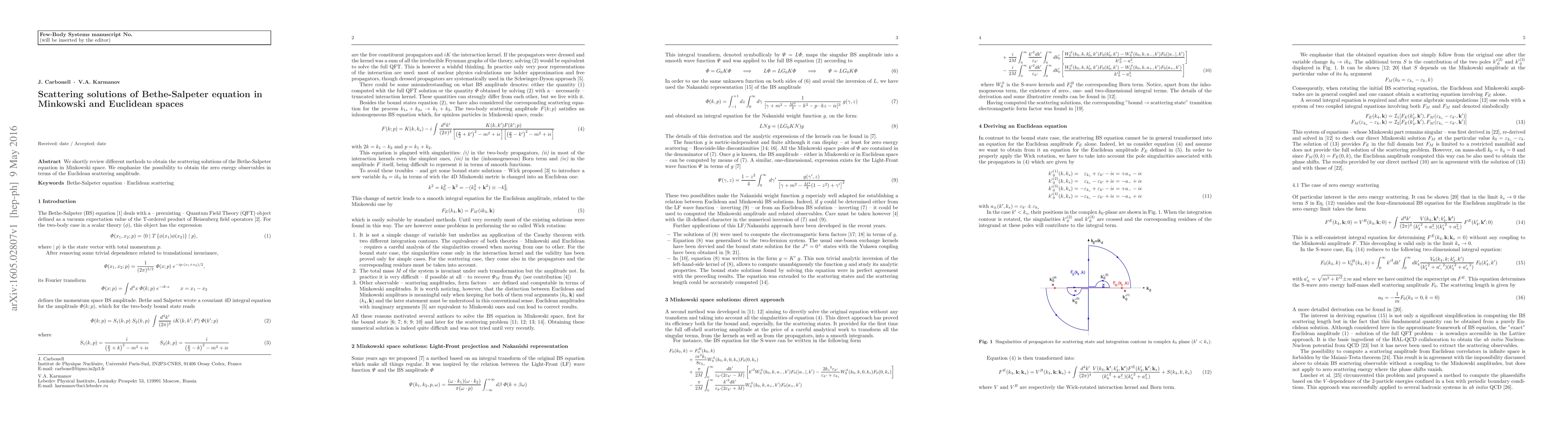 Summary: This paper reviews methods for solving the Bethe-Salpeter equation in Minkowski space to derive scattering solutions, highlighting the connection between zero energy observables and the Euclidean scattering amplitude.
