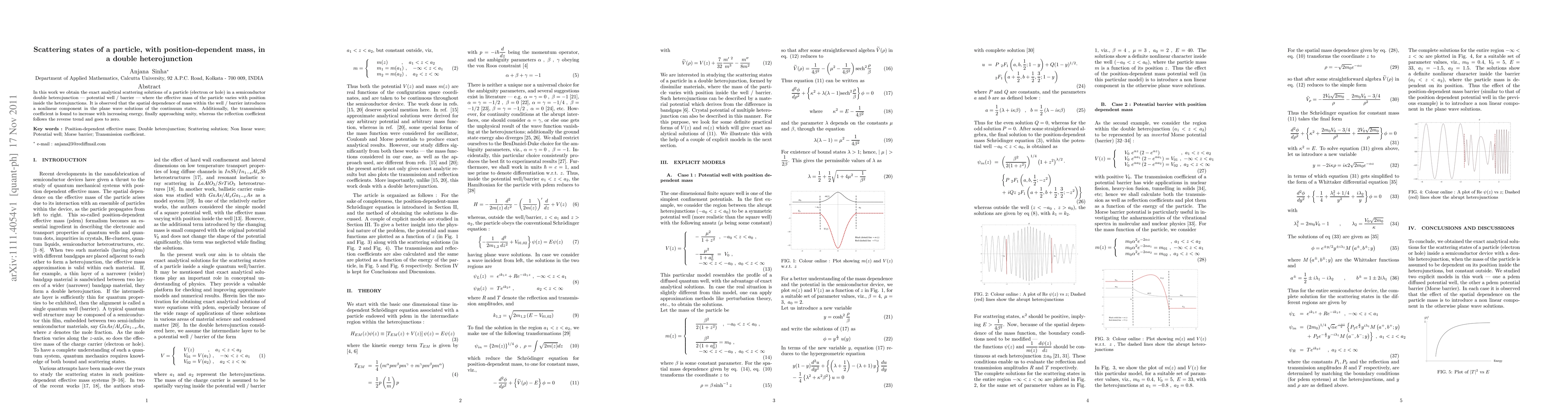 This paper presents exact analytical scattering solutions for particles in a semiconductor double heterojunction with position-dependent mass. The spatial mass variation introduces a nonlinear component in the scattering states, and the transmission coefficient increases with energy, while the reflection coefficient decreases.