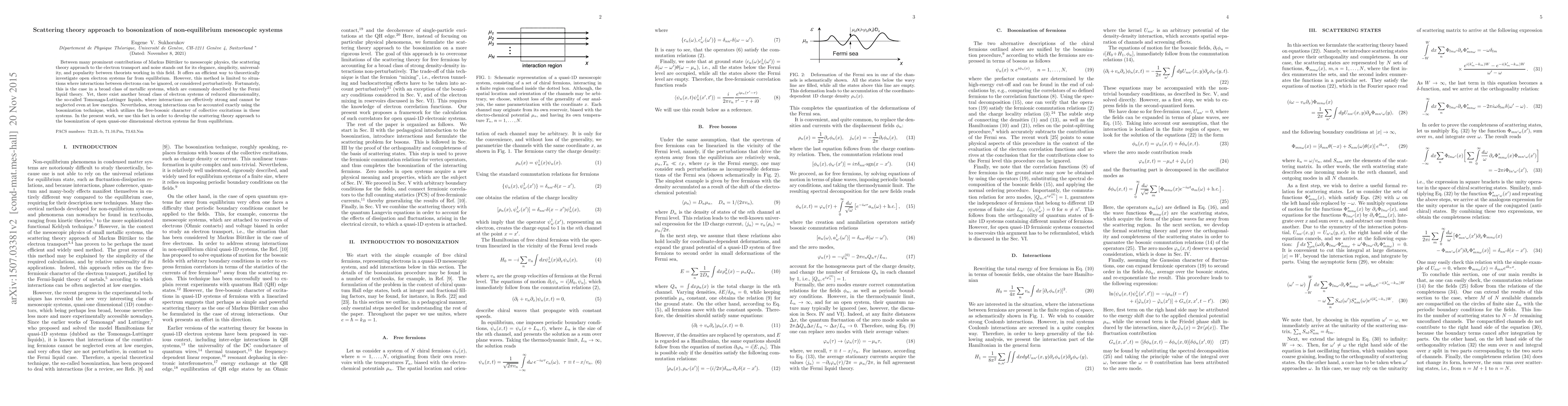 Between many prominent contributions of Markus Buttiker to mesoscopic physics, the scattering theory approach to the electron transport and noise stands out for its elegance, simplicity, universality, and popularity between theorists working in this field. It offers an efficient way to theoretically investigate open electron systems far from equilibrium. However, this method is limited to situations where interactions between electrons can be ignored, or considered perturbatively. Fortunately, this is the case in a broad class of metallic systems, which are commonly described by the Fermi liquid theory. Yet, there exist another broad class of electron systems of reduced dimensionality, the so-called Tomonaga-Luttinger liquids, where interactions are effectively strong and cannot be neglected even at low energies. Nevertheless, strong interactions can be accounted exactly using the bosonization technique, which utilizes the free-bosonic character of collective excitations in these systems. In the present work, we use this fact in order to develop the scattering theory approach to the bosonization of open quasi-one dimensional electron systems far from equilibrium.
