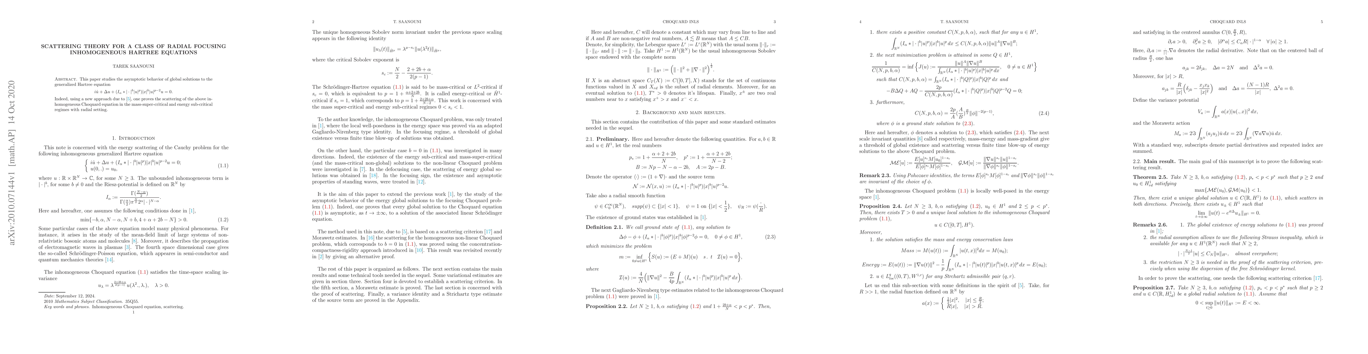 This paper investigates the asymptotic behavior of global solutions to a generalized radial Hartree equation, proving the scattering of solutions in mass-super-critical and energy sub-critical regimes using a novel approach.