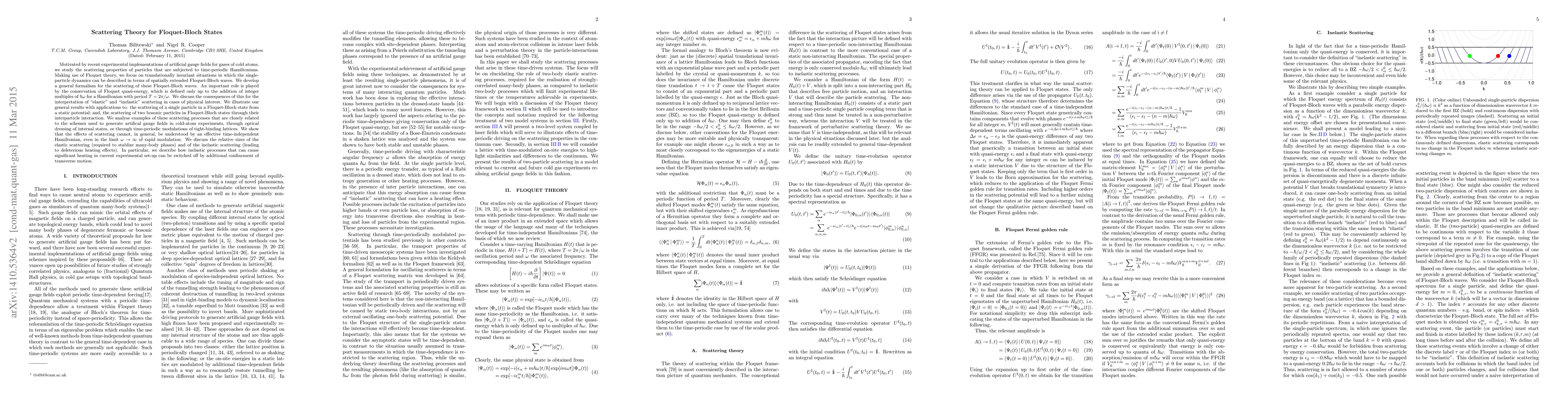 Motivated by recent experimental implementations of artificial gauge fields for gases of cold atoms, we study the scattering properties of particles that are subjected to time-periodic Hamiltonians. Making use of Floquet theory, we focus on translationally invariant situations in which the single-particle dynamics can be described in terms of spatially extended Floquet-Bloch waves. We develop a general formalism for the scattering of these Floquet-Bloch waves. An important role is played by the conservation of Floquet quasi-energy, which is defined only up to the addition of integer multiples of $\hbar\omega$ for a Hamiltonian with period $T=2\pi/\omega$. We discuss the consequences of this for the interpretation of "elastic" and "inelastic" scattering in cases of physical interest. We illustrate our general results with applications to: the scattering of a single particle in a Floquet-Bloch state from a static potential; and, the scattering of two particles in Floquet-Bloch states through their interparticle interaction. We analyse examples of these scattering processes that are closely related to the schemes used to general artifical gauge fields in cold-atom experiments, through optical dressing of internal states, or through time-periodic modulations of tight-binding lattices. We show that the effects of scattering cannot, in general, be understood by an effective time-independent Hamiltonian, even in the limit $\omega \to \infty$ of rapid modulation. We discuss the relative sizes of the elastic scattering (required to stablize many-body phases) and of the inelastic scattering (leading to deleterious heating effects). In particular, we describe how inelastic processes that can cause significant heating in current experimental set-up can be switched off by additional confinement of transverse motion.